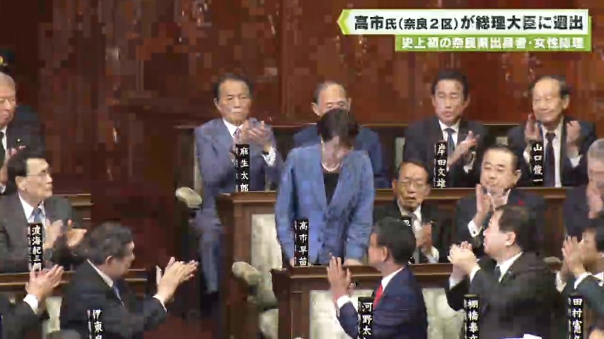 史上初の奈良県出身者・女性総理 高市早苗氏(奈良2区)が総理大臣に選出