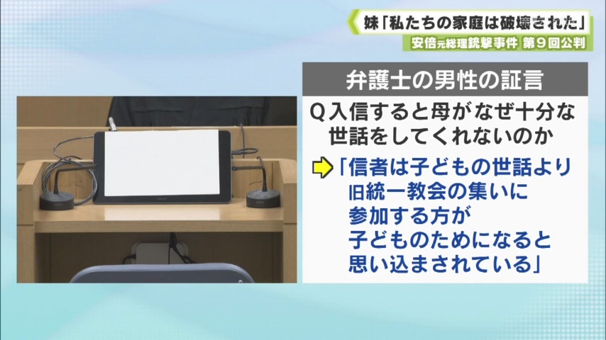 このほか、旧統一教会の元信者だった弁護士の男性も証言台に立ちました。被告の妹の証言を受けて、入信すると母がなぜ十分な世話をしてくれないのかという弁護側の質問に対し、「信者は子どもの世話より、旧統一教会の活動に参加する方が子どものためになると思い込まされている」と信者の実態を述べました。