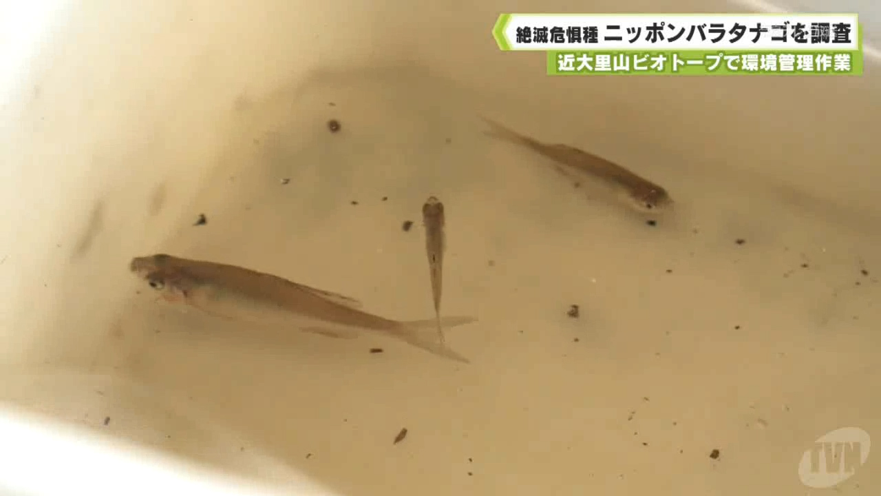 近大里山ビオトープで環境管理作業 絶滅危惧種ニッポンバラタナゴを調査