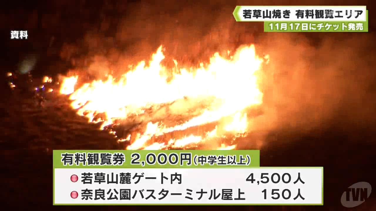 若草山焼き 有料観覧エリアのチケット 11月17日に発売