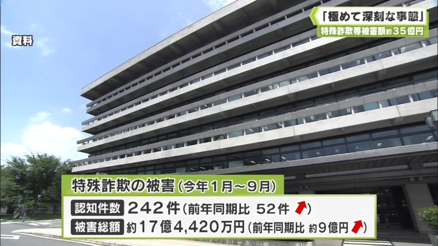 「極めて深刻な事態」 9月末までの特殊詐欺等 被害額 約35億円