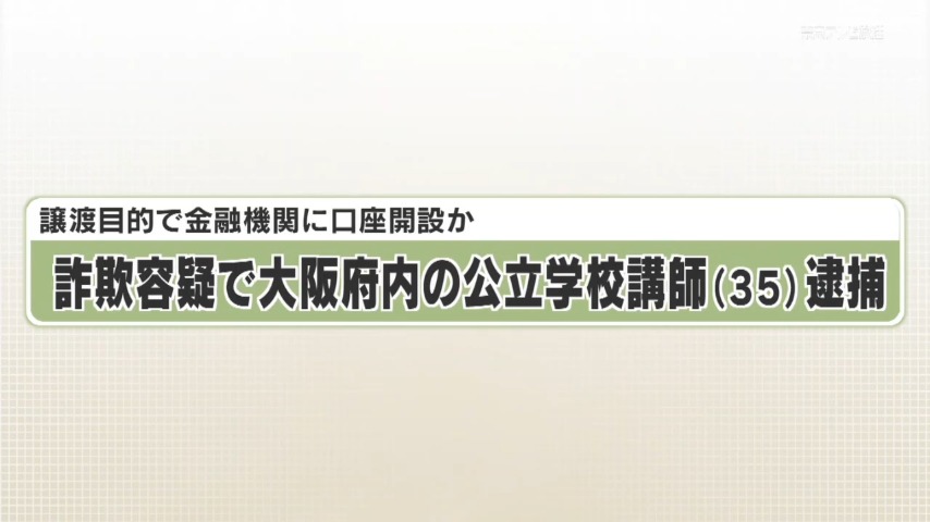 譲渡目的で金融機関に口座開設か 詐欺容疑で大阪府内の公立学校講師(35)逮捕