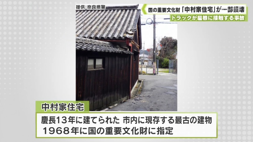 トラックが屋根に接触する事故 国の重要文化財「中村家住宅」が一部損壊 奈良