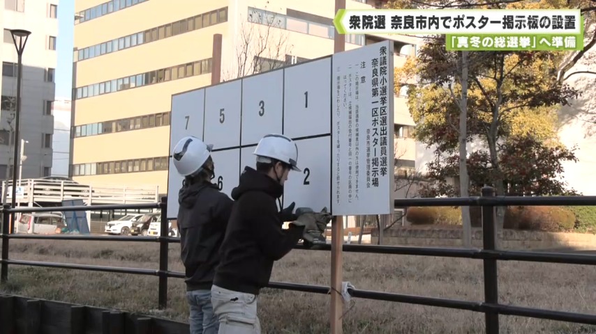 「真冬の総選挙」へ準備 衆院選 奈良市内でポスター掲示板の設置